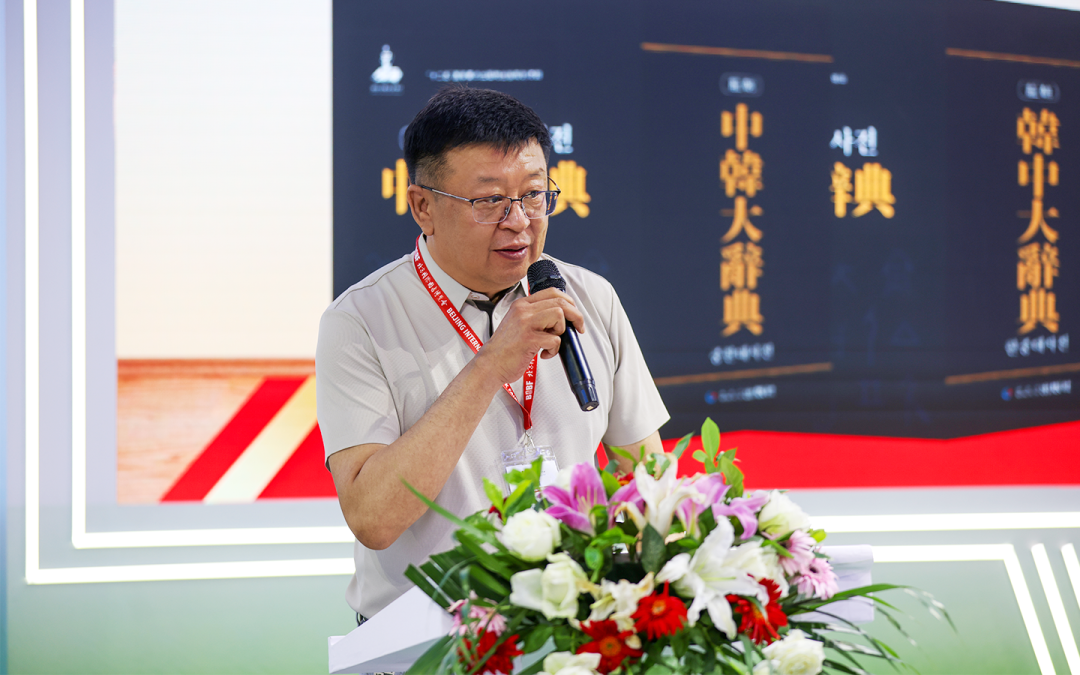 黑龙江朝鲜民族出版社社长刘相海在发言中回顾了两部辞典的编纂历程,强调此次签约是传统出版与科技网络的深度融合。他表示,在数字化浪潮下,网络版权成为推动优质内容传播的关键,过去双方的合作已让词典以数字化形式走向更广阔市场,提升了影响力与使用价值,此次再次签约是双方共同擘画未来的郑重承诺。